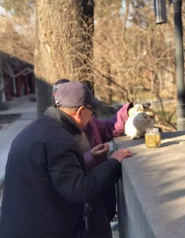 去公園散步拍到的,一對老夫妻正在喂養流浪貓。