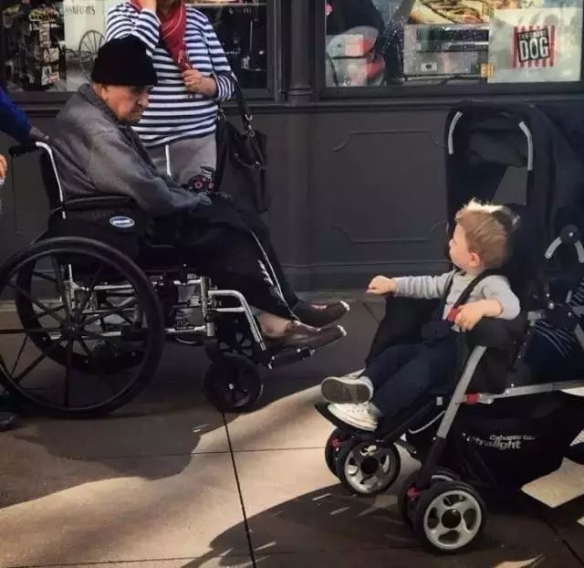 街頭一個相差近百年的對視,而如今,他們的生活卻很相似。生命像一個圓,周而複始,走向結束便也接近了開始。