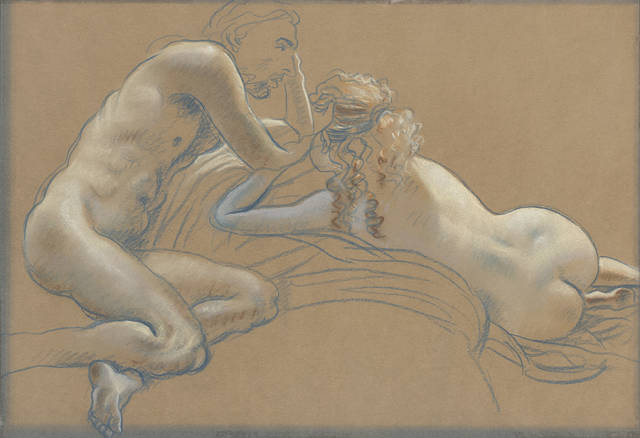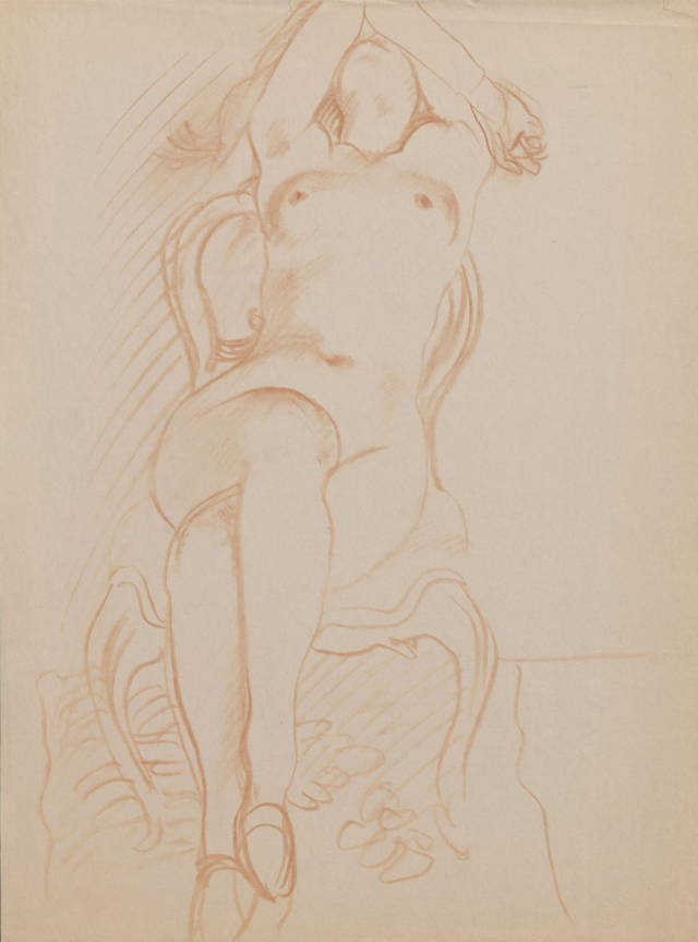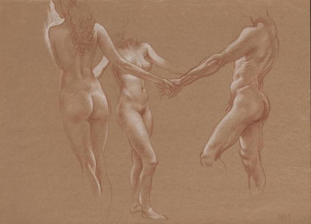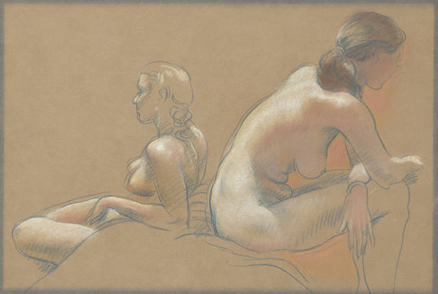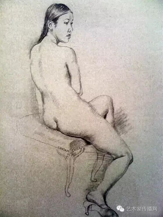 陳丹青原以速寫見長,畫色粉是他80年代到紐約後的事,依舊好手感,用筆卻比速寫更精進更複古,筆筆中鋒,線條自起自導,人身的輪廓、重量、空間、體積、骨與肉,均由線條發起,最後又都歸回到線條,而飽滿的造型,生動的姿態、渾圓的形體,肌膚的溫度,躍然紙上。
