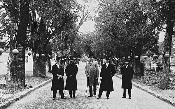 1914年,章宗祥(左一)、陸征祥(左二)、朱啟鈐(左四)、曹汝霖(左五)的合影照。 1918年12月1日,外交總長陸征祥率團赴歐洲參加巴黎和會。