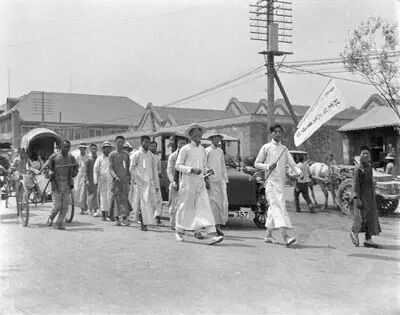 1919年5月4日,參加街頭演講的北京財政商業學校學生。