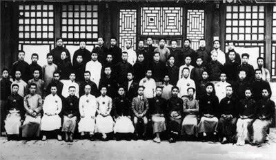 1919年6月,北京某師範學校的學生被釋放後,在監獄外合影。