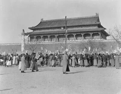 1919年5月4日下午1時,北京13所高校的3千多名學生代表衝破軍警阻撓,雲集天安門。