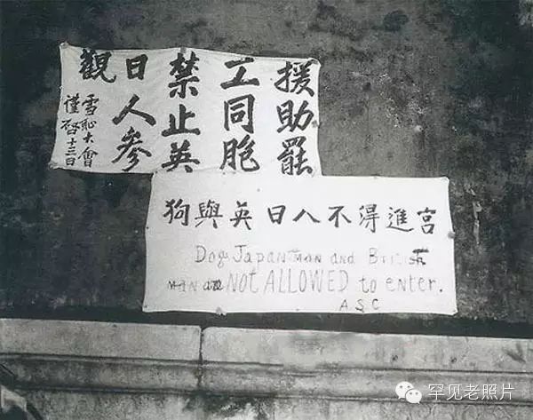 1925年,北京,五卅運動中,抗議英日慘殺同胞的市民貼出了禁止英日人參觀故宮的標語“狗與英日人不得進宮”。