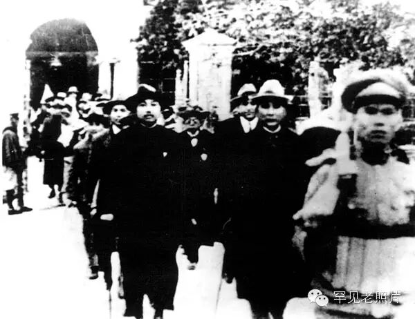 1924年1月,孫中山、李大釗與國民黨一大代表步出會場。