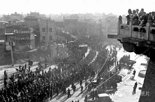 1948年,遼沈戰役,長春市民、學生歡迎國軍進駐長春。