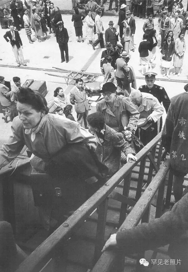 1949年5月,解放軍攻占南京後,外國人登上輪船撤離上海。