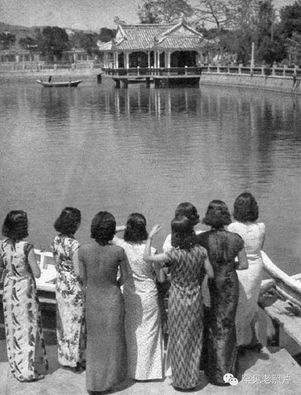 1939年,八位穿著各色旗袍的女性在廈門公園。