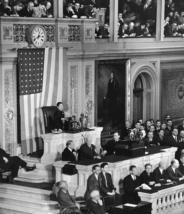 1943年,宋美齡應美國副總統邀請,2月18日在美國國會做即席演講,爭取美國援助中國抗戰。