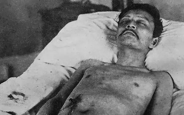 1927年,某市街頭上,一名被餓死的小乞丐。