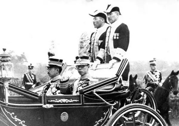 1935年4月,溥儀訪日,與天皇裕仁同乘馬車前往代代木練兵場,出席近衛師團觀兵式。