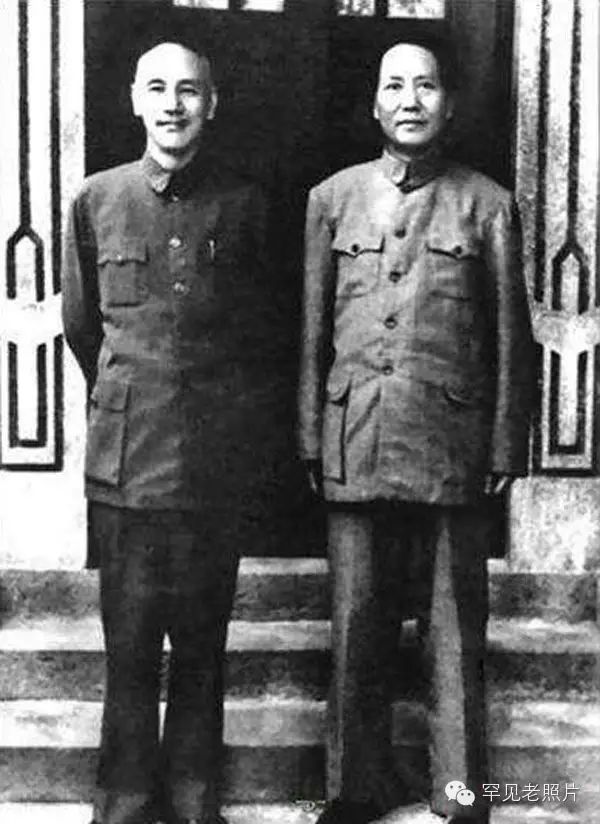 1945年,重慶談判時期毛澤東與蔣介石合影。