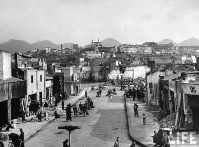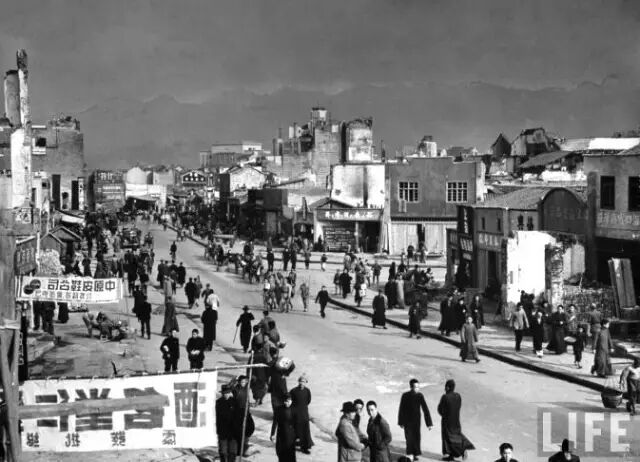 重慶,被日機轟炸後殘破的商業街。卡爾·邁登斯/攝,大約拍攝於1940-1941年。