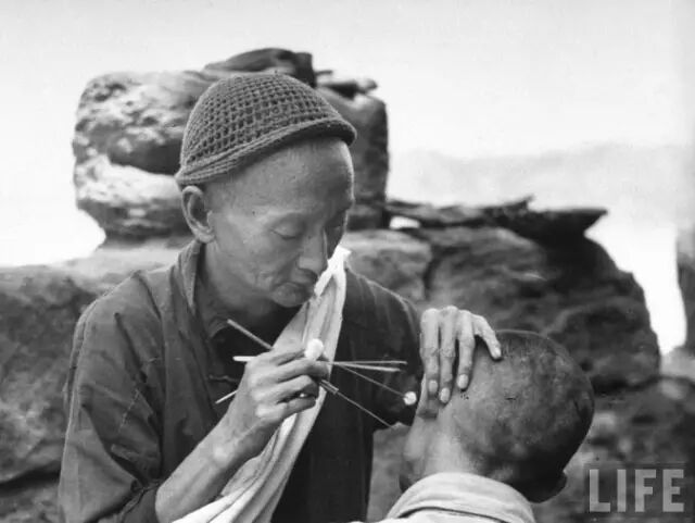 重慶,掏耳朵。卡爾·邁登斯/攝,大約拍攝於1940-1941年。