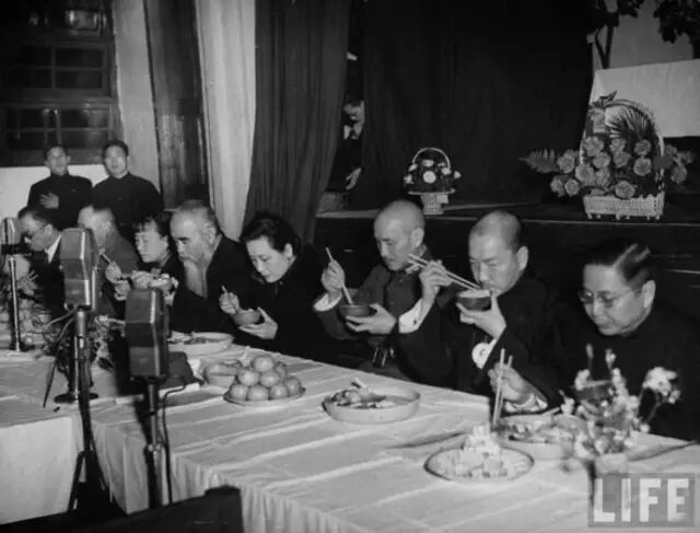 重慶,紀念“新生活運動”七周年,政府要員在吃素食。卡爾·邁登斯/攝,大約拍攝於1940-1941年。