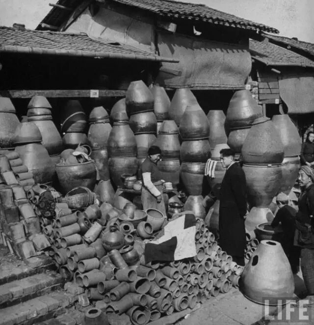 重慶,賣土陶製品的店鋪。卡爾·邁登斯/攝,大約拍攝於1940-1941年。
