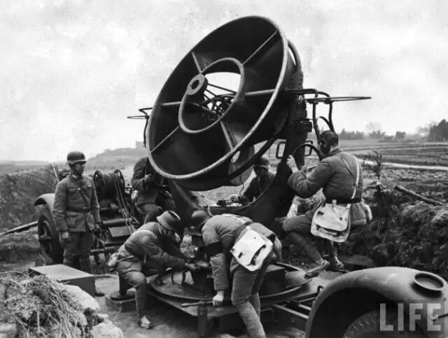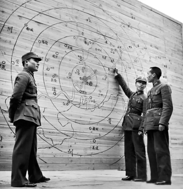 重慶,捕捉敵機信號的聲音探測器。卡爾·邁登斯/攝,大約拍攝於1940-1941年。