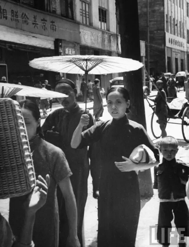 重慶,街上打油紙傘的婦女。卡爾·邁登斯/攝,大約拍攝於1940-1941年。