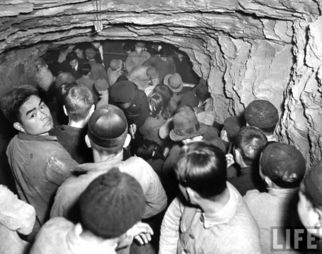 重慶,百姓進入防空洞,躲避日機轟炸。卡爾·邁登斯/攝,大約拍攝於1940-1941年。