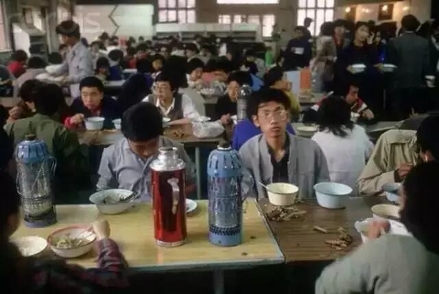 單位食堂吃飯都是人手一個海碗,洋瓷缸就去了,大鍋飯、長條凳,大家坐在一排,有說有笑。