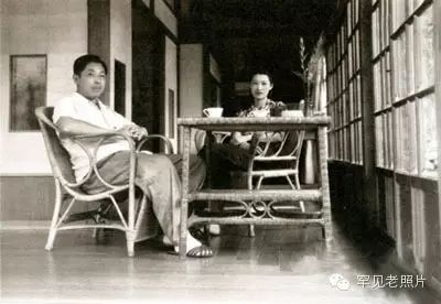 1947年,張學良和趙一荻在台灣井上溫泉住所,這是他們被秘密押至台灣後,莫德惠前來探訪時拍攝的照片。