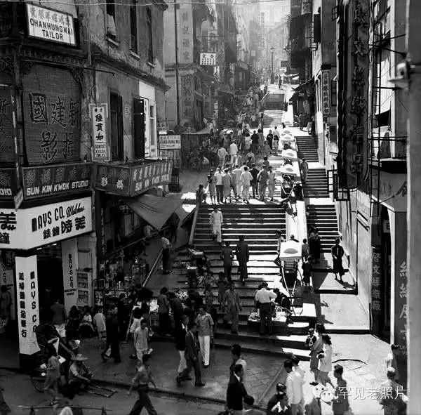 1946年,香港島中環區階梯街,行人及街頭小販。海達·莫裏森女士/攝。