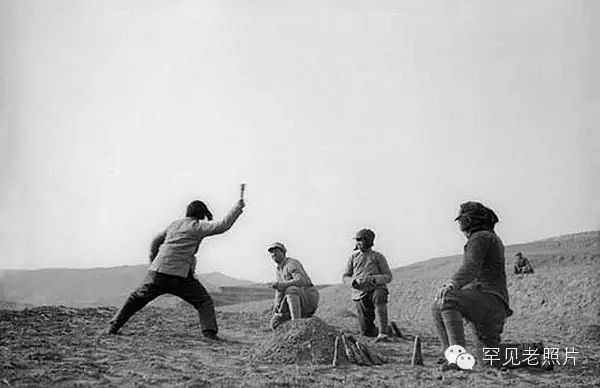 1944年,晉綏邊區,一位八路軍民兵隊員手抱做好的地雷。
