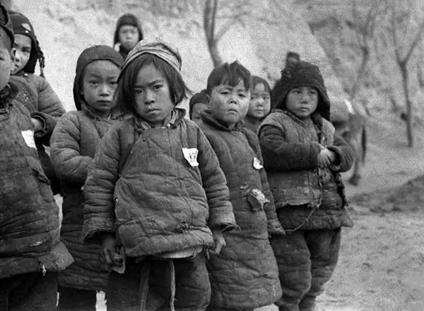 1943年,河南省,饑荒受災地區的目光呆滯的兒童。