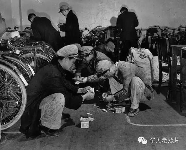 1948年3月,上海,銀行發給上海電話公司職員的工資是一捆捆貶值的紙鈔,工人們蹲在地上來數屬於自己成捆的鈔票。