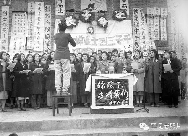 這是北大、清華、燕大歌詠隊在合唱挽歌。新華社記者張祖道攝。