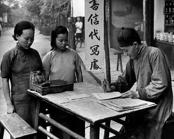 1941年,四川簡陽縣龍泉驛鎮,代寫書信營生的先生。卡爾·邁登斯/攝。