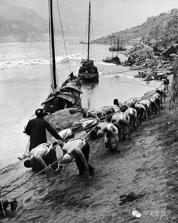 1946年,三峽江段的纖夫。凱塞爾(美)/攝。