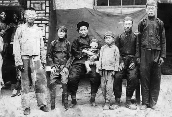 1940年春,呼和浩特市郊區,一戶農家人的全家福。這一張照片花去了這家蒙疆幣50元。