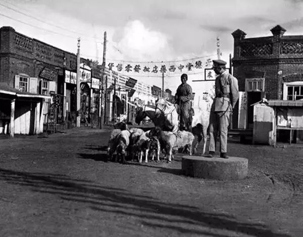 1947年,陝西臨潼縣,城市裁判官站在判決大廳前。
