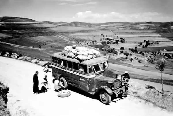 1940年,寶雞長壽山上,拋錨的長途客車。美國《生活》雜誌攝影師卡爾·邁登斯/攝。
