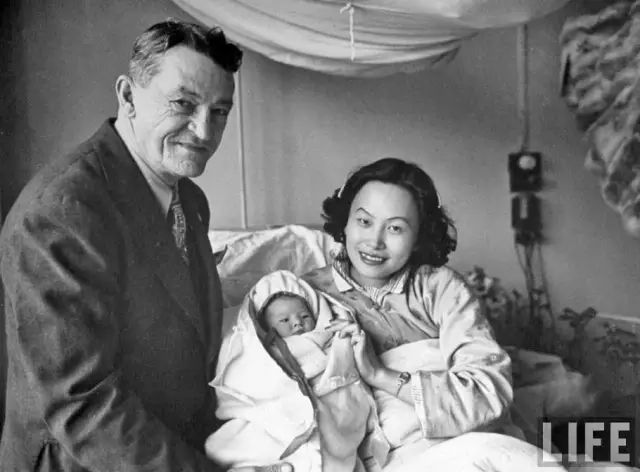 1949年3月,廣州,美國援華空軍飛虎隊隊長陳納德將軍與他的妻子和剛出生的寶寶。卡爾·邁當斯/攝。