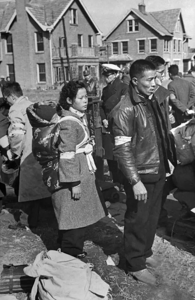 1945年,上海,等待海關檢查行李和衣物的日本僑民。喬治·拉克絲/攝。