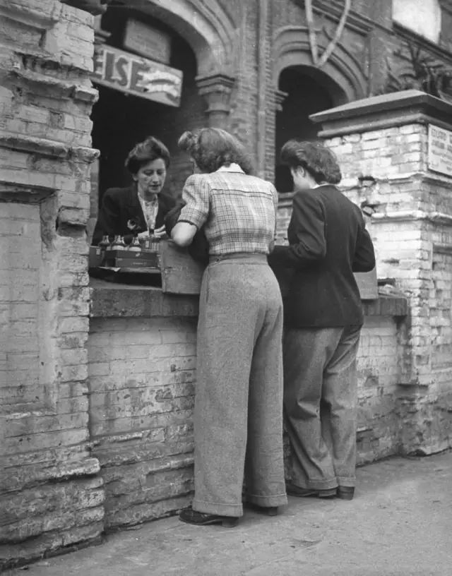 1945年,上海,兩個女人在街攤上買日本化妝品。喬治·拉克絲/攝。