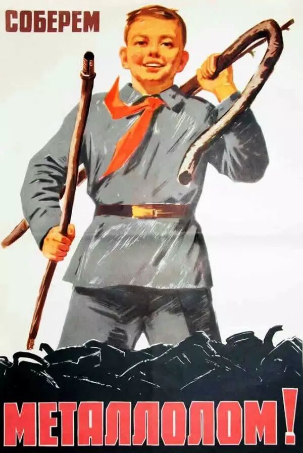1966年宣傳畫,畫中文字內容是“收集金屬廢料”。