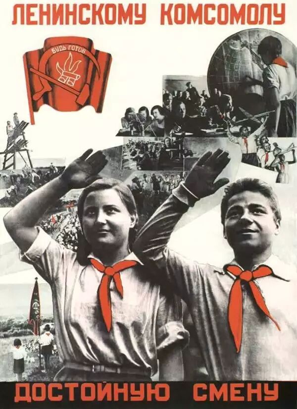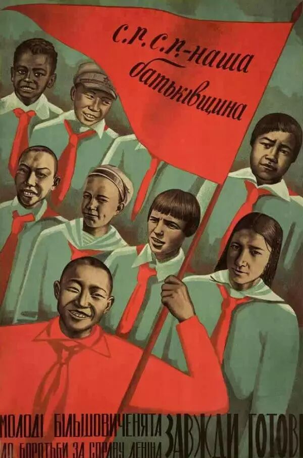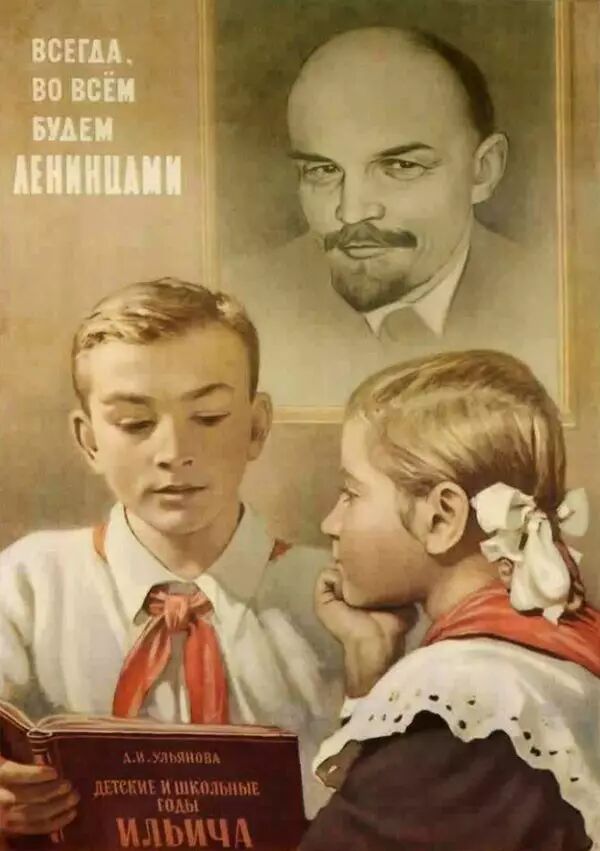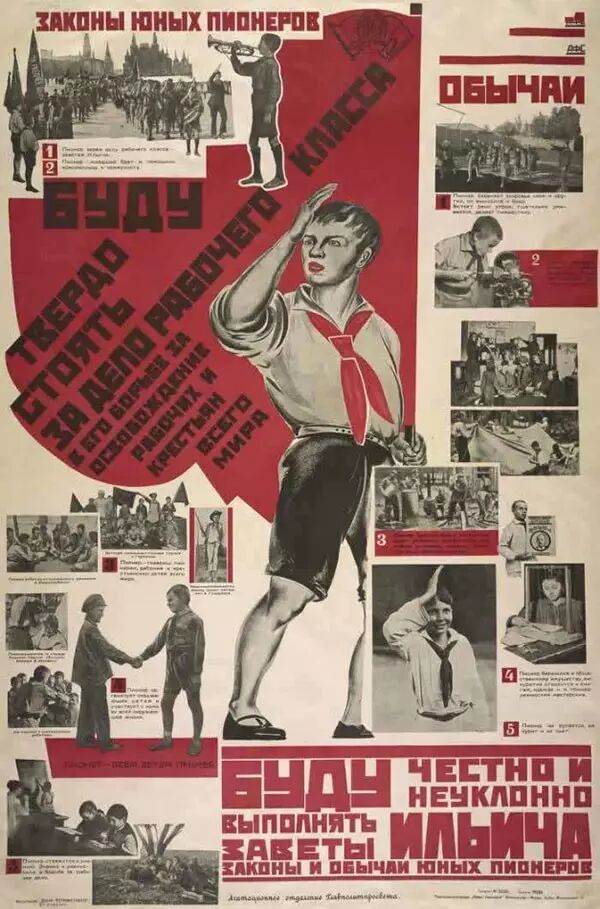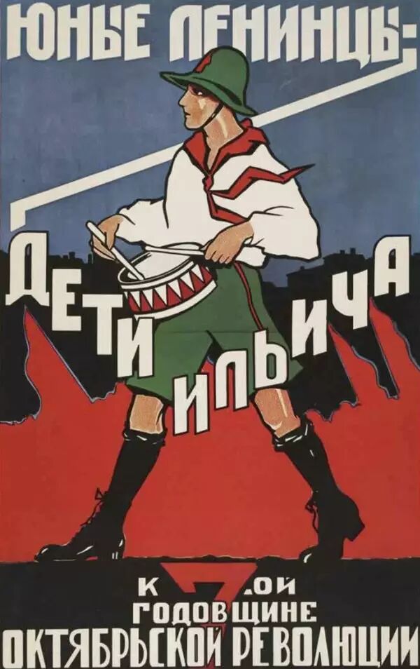 1924年宣傳畫,畫中文字內容是“少年列寧主義者——伊裏奇的孩子(伊裏奇是列寧的名字)”。