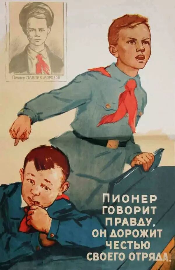 1969年宣傳畫,畫中文字內容是“說真話的少先隊員將獲得自己隊伍的尊重”。