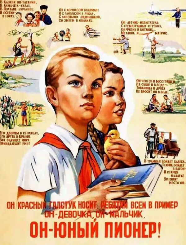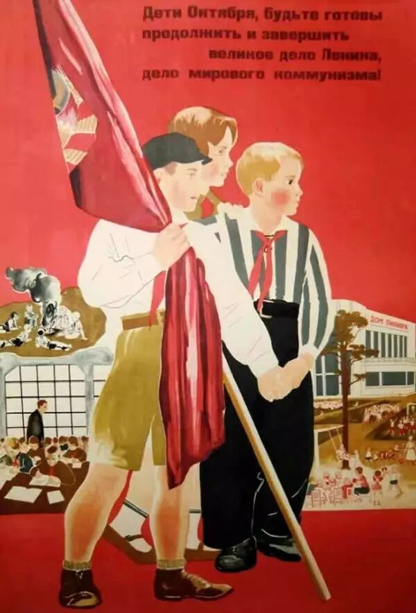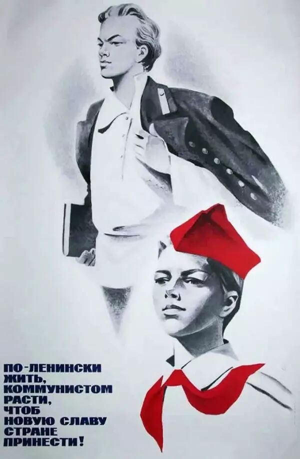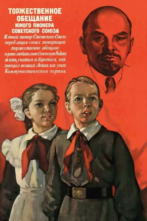 1959年宣傳畫,畫中粗體字內容是“蘇聯小少先隊員的莊嚴承諾”。