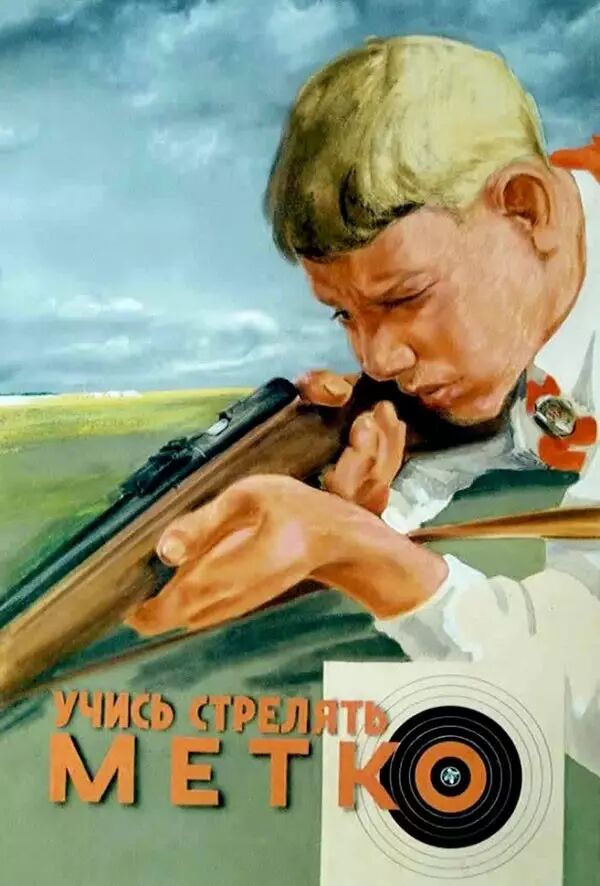1958年宣傳畫,畫中文字內容是“學習準確射擊”。