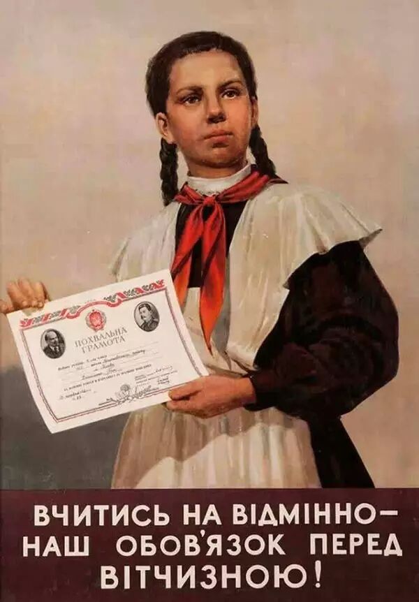 1953年宣傳畫,畫中文字內容是“學習優異是我們對祖國應盡的義務”。