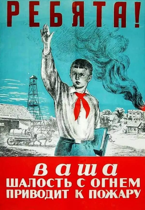 1949年宣傳畫,畫中文字內容是“孩子們,你們玩火會引起火災的”。