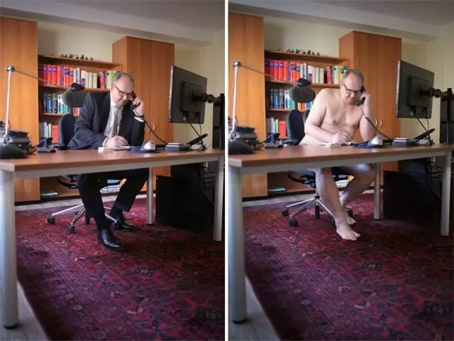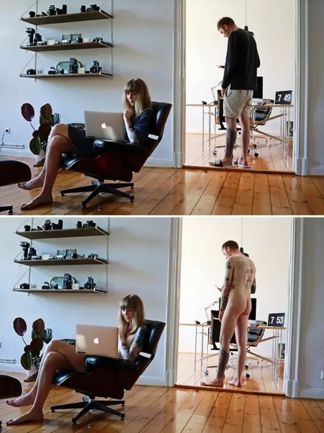 裸體是否等於性?德國攝影師Sophia Vogel 拍攝了一個名為「With and Without」的作品係列,她透過先問每一個人平時有什麽嗜好與興趣,例如聽音樂呀、畫畫呀之類,攝影師就讓被攝者拍攝兩張近乎一樣的照片,最大分別就是一張有穿衣,一張是裸體。