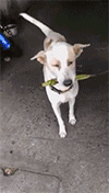 泰國街邊,一個好心的姑娘經常喂流浪狗食物。其中一隻小家夥,每次來吃東西時,嘴裏都會叼著一些“禮物”作為回報。有時是一根樹枝,有時是幾片葉子。