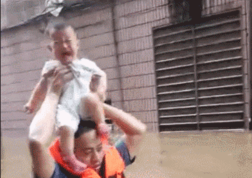 “寶貝不哭,有叔叔在”。7月,湖南婁底暴雨傾盆,為了不讓小嬰兒沾到髒水,民警在齊胸的洪水裏,把孩子托舉到頭頂,艱難地向安全地帶轉移。