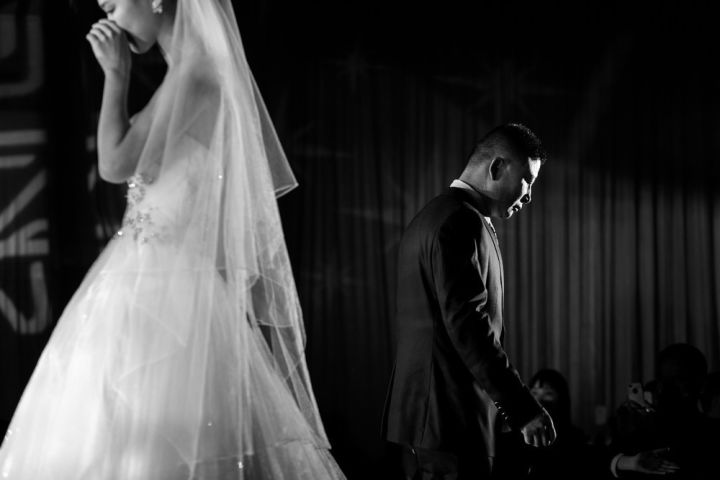 他把女兒的手,交到另一個男人的手上,背影落寞。