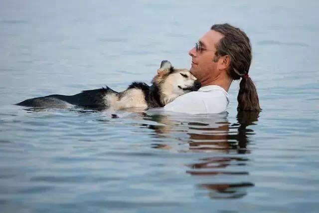 每天傍晚,這個男人都會帶著生病狗狗,到湖裏遊一會兒泳。隻是因為醫生說,水可以幫助狗狗減緩痛苦。